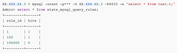 mysql-utest -ptest -h XX.XXX.XX.3 -P6033 -e"select * from B.t where id=1"