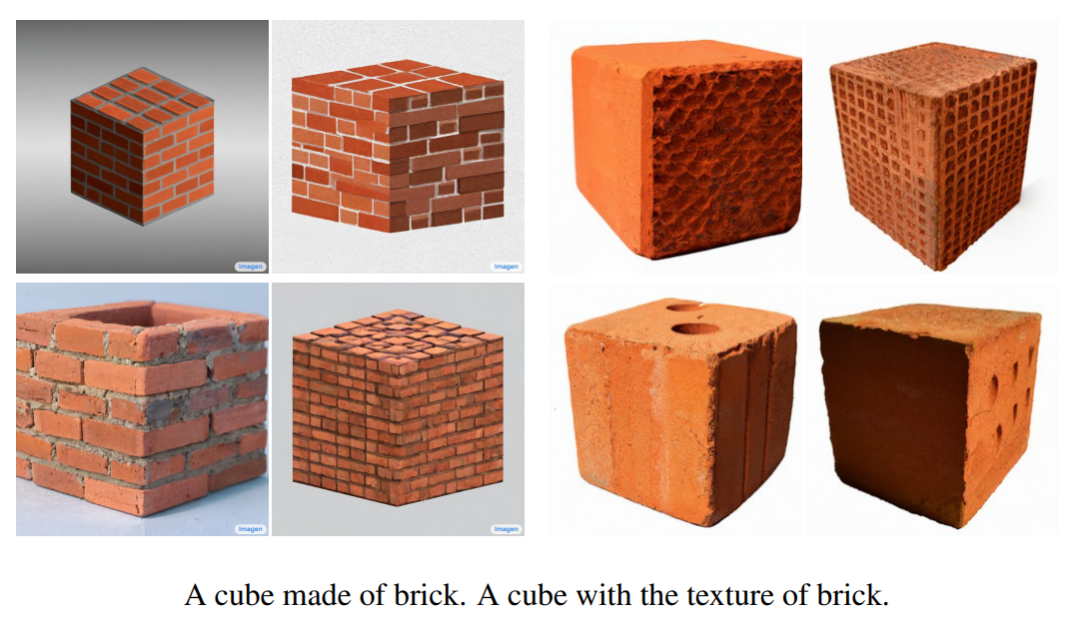 我们发现这些图片的分辨率都很高,像是人工精心 PS 过的。然而这些模型都出自 Imagen 这个 AI 模型之手。