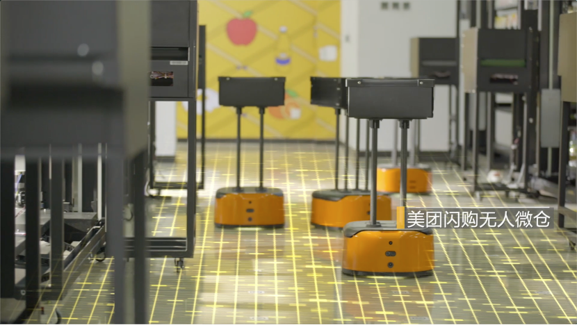 实际上,早在 2019 年 6 月,美团闪购就已经发布无人微仓解决方案,主要面向商超,以前置仓模式自动化完成零售到家场景的订单拣选和打包。对于美团订单需求巨大派送体系而言,无人微仓极大展示了其高效派送的能力。