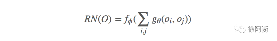 RN 的网络结构是真的很简单(不然也不会说是”simple neural network”),以至于通篇下面一个公式就可以概括,核心就是利用神经网络来找出任意 pairwise 对象之间的潜在关系。