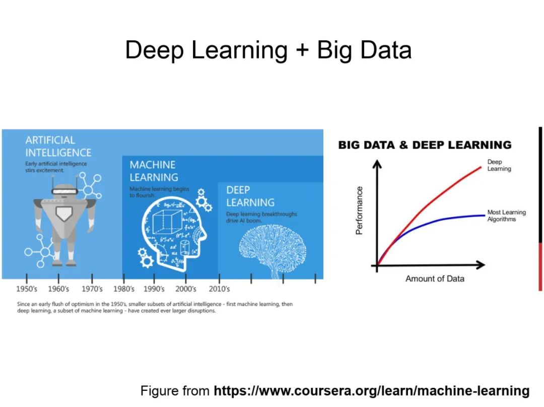 机器学习是属于人工智能中的一类技术,其包含了监督学习、非监督学习及强化学习。而深度学习又是隶属于机器学习领域中的一种最新技术,其在大数据方面表现出了更好的性能,但也更依赖大数据。