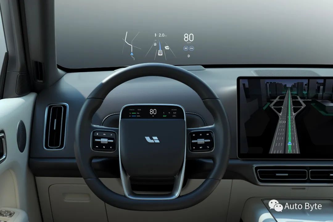 对于驾驶员:超大尺寸HUD替代了传统仪表,可将导航、自动驾驶、车速、限速、挡位等信息都投影在前风挡上,驾驶员可长时间将视线集中在前方。下方只在方向盘上保留了一个小尺寸Mini-LED屏幕,显示最关键的部分行车信息。这块屏幕还支持触控功能,驾驶员可以用来切换驾驶模式。