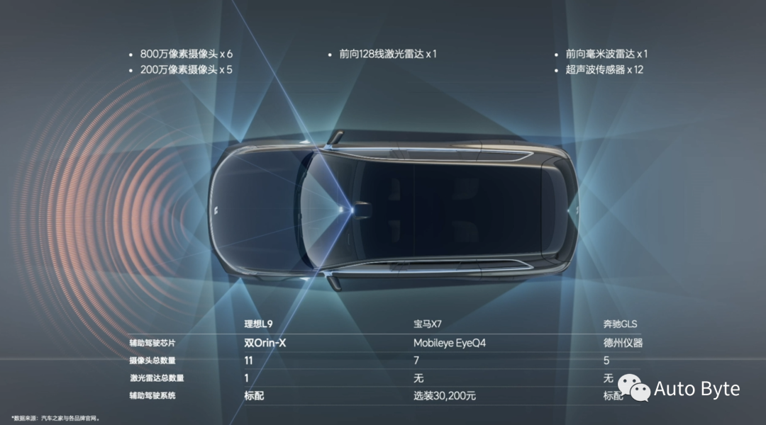 计算平台上,理想L9采用了两颗定制化Orin-X芯片,总算力达到508TOPS。