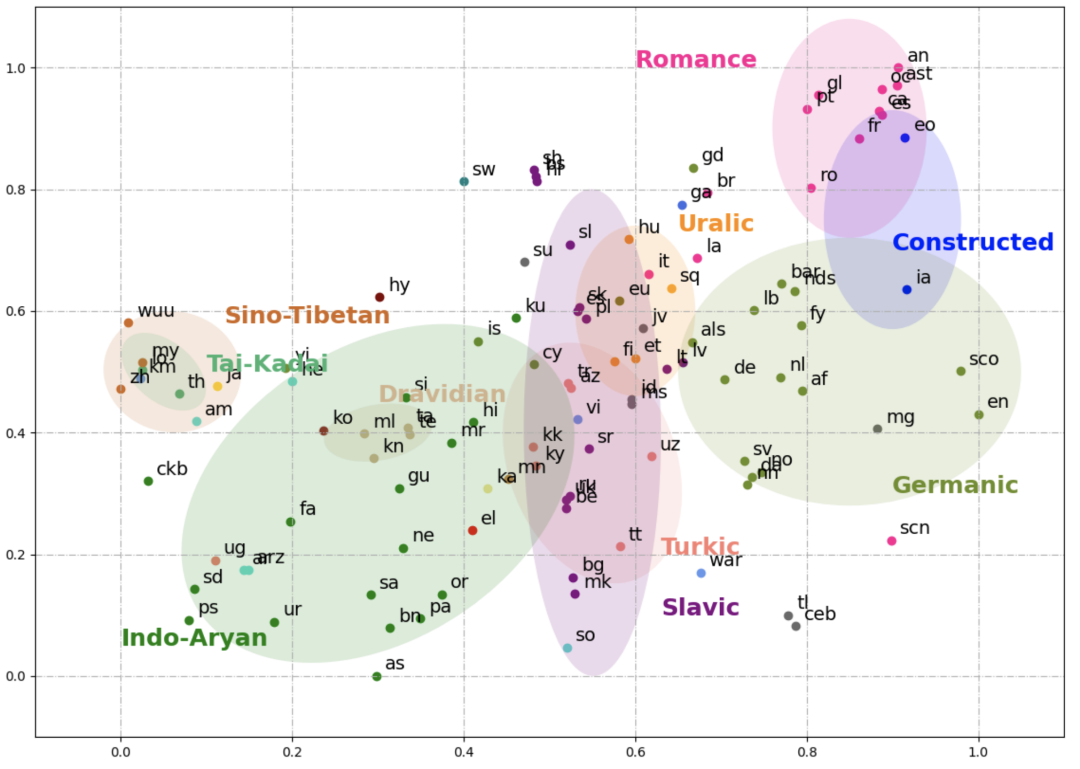 本文通过可视化分析揭示了语言嵌入表示丰富的语言学性质。研究员们希望未来进一步探索基于深度学习的多语言 NLP 与经典语言学理论的联系。