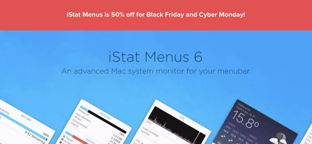 Mac 上的知名系统监控工具,可以在菜单栏与通知中心监控你电脑的 CPU、内存等情况。使用中国大陆的 IP 购买会在原本的价格上再享 5 折优惠,特价后,家庭版的价格甚至比单用户的原价还要低,非常实惠。