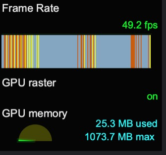帧率 FPS(Frames Per Second - 每秒传输帧数),一般对于网页而言,最优的帧率在 60 FPS,如果越接近这个值,页面就越流畅,帧率如果远低于这个值,用户可能会明显感觉到卡顿。