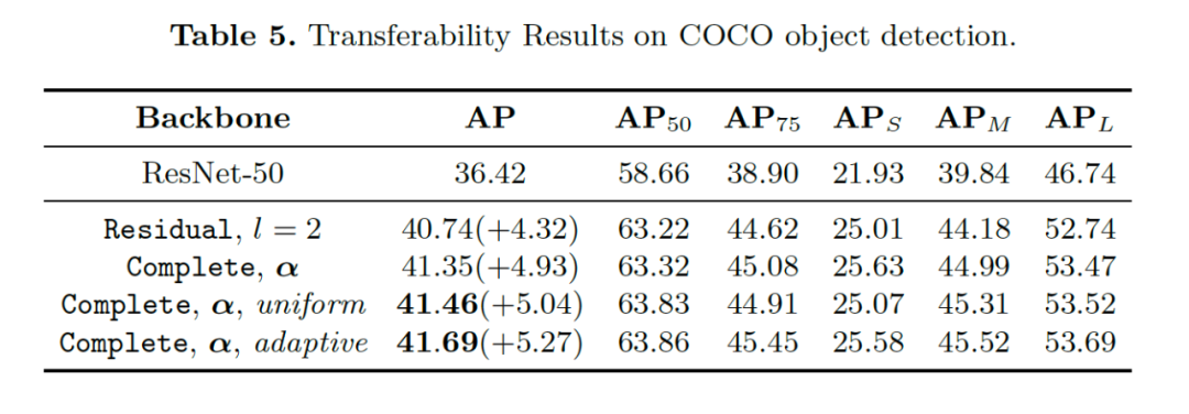 在目标检测上的实验也验证了这种方法具有良好的迁移和泛化能力,结果如表5所示。
