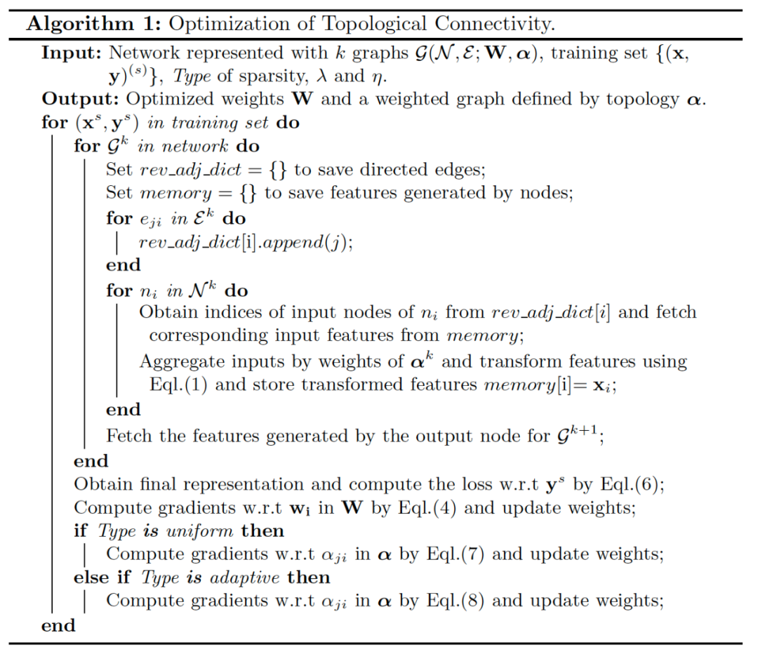 我们提出一种可微分的方式来优化网络的连通性。通过学习连续的边上权重组成的集合,优化过程可以和现有的梯度下降更新方式兼容,对应任务的损失函数可以定义为