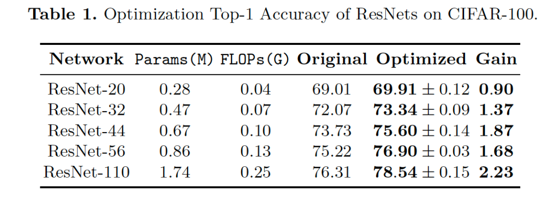 我们的优化方式可以和现有的网络结构很好地适应,通过将网络表示为拓扑视角下的DAG形式,我们对ResNet和MobileNet进行优化,优化结果在CIFAR100和ImageNet上取得了较好的提升。特别地,在Mobile Setting下,我们优化得到的结构在ImageNet上可以取得76.4%的Top-1准确度。