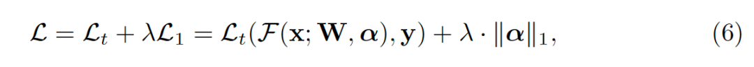 由于不同层产生的特征具有不同的语义信息,他们会对后续的节点贡献不同的权重。类似于生物中的神经连接机制,突触在幼儿的早期阶段会被创建,随着生长的过程重要程度被重新建立,成长为相对稀疏的连接。相同的稀疏特性也在哈希检索上验证了有效性。为了利用稀疏特性带来的优势,我们对拓扑的分布添加额外的L1稀疏约束,来惩罚非零的权重向零靠拢。这个稀疏约束让连接更关注重要的部分,移除不重要的连接,以此来增加网络的泛化能力。优化目标可以被重新定义为: