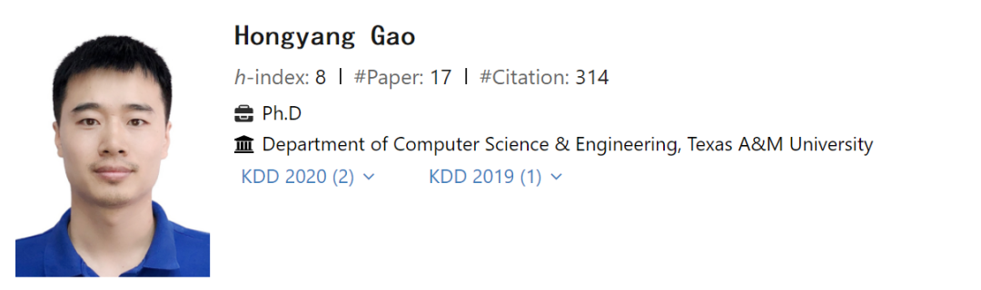 Hongyang Guo 有 2 篇论文入选,但仅有一篇文章作为第一作者。他去年在本会议也有 1 篇论文入选的表现。他目前是德州农工大学计算机科学与工程系三年级博士生。导师是博士 Shuiwang Ji.