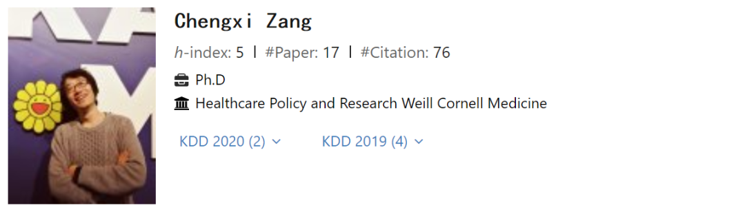 Chengxi Zang(臧承熙)在本次会议上共发表 2 篇论文,且均为第一作者。而去年他也以 4 篇论文入选成为最高产的华人学生,他已连续两年蝉联高产华人一作学生榜首!