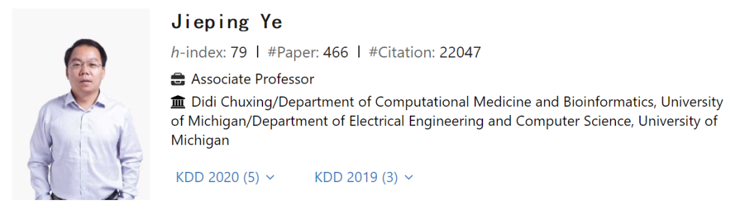 Jieping Ye(叶杰平)本次会议上以 5 篇论文入选位居华人投稿数量第3名,而去年他也有 3 篇论文入选。特别地,他和 Hui Xiong(熊辉)并列为近5年最高产的华人学者!