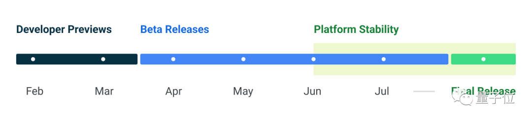 这次谷歌计划发布两个开发者版本和4个Beta版本。根据谷歌给出的发布计划,正式版最早在8月放出: