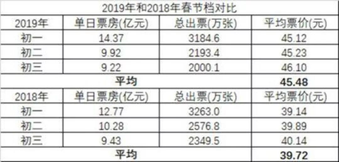 相关数据显示,整个春节档观影人次较去年下降了超过811.2万人次,约下降4%,四部头部影片上座率均未超过60%,场均人次下降22%,与此同时,伴随着票补减少,院线票房压力加剧,三四线城市影院更多地将业绩押注在了春节档,平均票价从39.72元上涨到了45.48元,上涨14.5%,刷新春节档首日票房纪录的更多依靠的是票价上涨而非观影人次的增长。