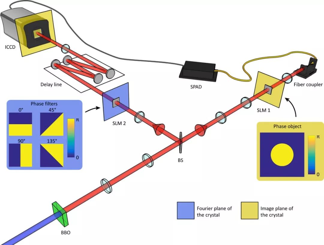 第二个光子通过一个约20米长的图像保存延迟线传播,最后被一个增强电荷耦合器件(ICCD)相机检测到。