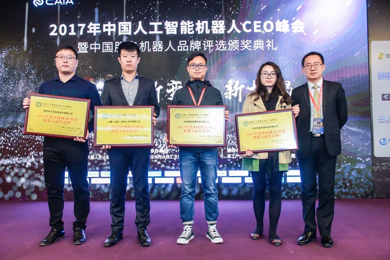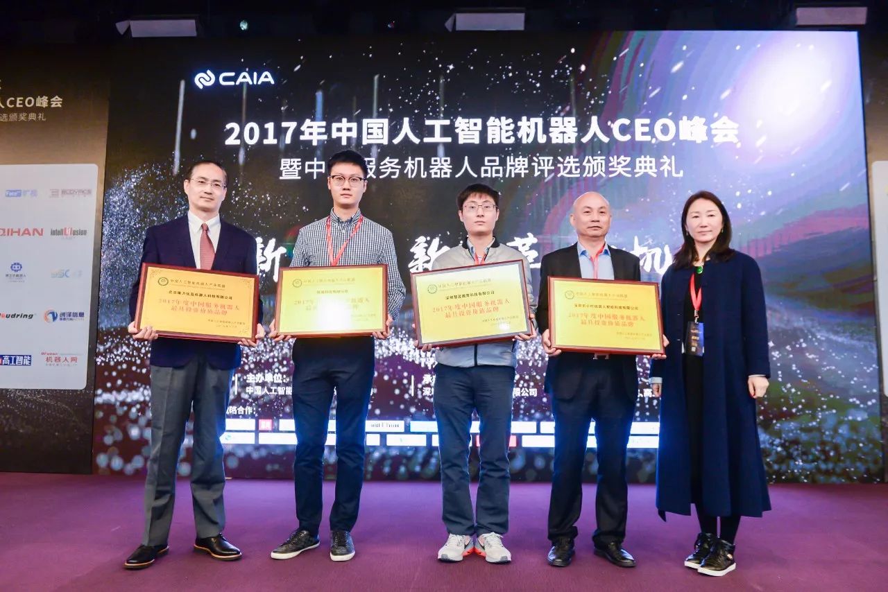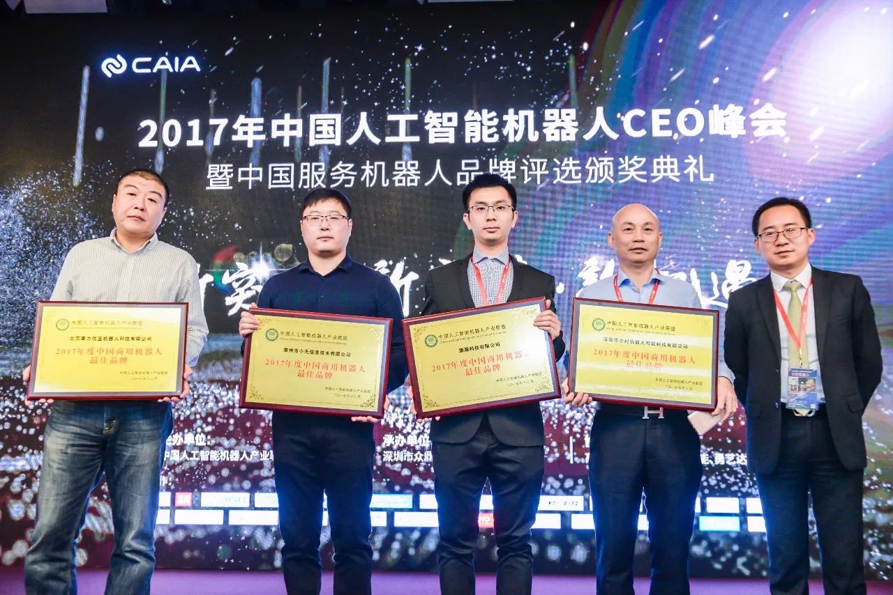 值得注意的是,在本次峰会上,CAIA举行了“2017年度•中国服务机器人品牌评选颁奖典礼”,一共颁发了,“2017年度·中国服务机器人十大技术创新产品”、“2017年度·中国服务机器人最具投资价值品牌”、“2017年度·中国教育/娱乐机器人最佳品牌”、“2017年度·中国服务机器人应用十大运营商”、“2017年度·中国商用机器人最佳品牌”五大奖项。