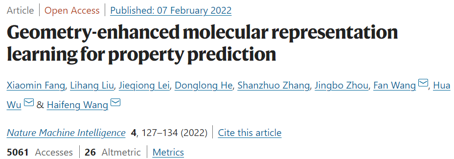 考虑到具有相同拓扑结构的分子的不同异构体可能具有不同的化学性质,可以添加到分子图形表示中的另一个组件是它们的几何结构。Fang xiaomin 团队最近的一篇论文。描述了如何在几何增强的 GNN 方法中对分子的拓扑结构和几何结构进行编码可以改进分子特性预测。