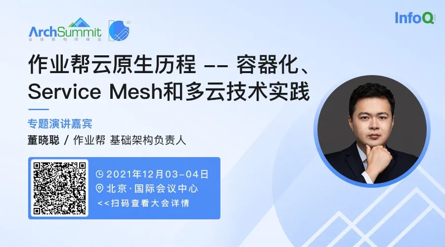云原生中较为标志性的成熟技术是容器技术和 Service Mesh 技术,除此之外,多云技术也是最近大家津津乐道的一块。在 12 月 3-4 日北京 ArchSummit 架构师峰会上,我们邀请了作业帮基础架构负责人董晓聪老师来分享他们的 K8s 应用、服务治理和多云探索的话题。感兴趣的可以点击【阅读原文】,或者来电咨询 17310043226。