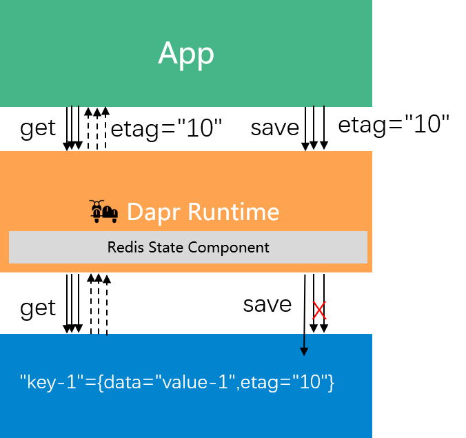 并发支持:乐观锁机制,要求组件为每个 key 提供一个 etag 字段(或者称为 version),每次修改时都要比对 etag,修改后要更新 etag。这个特性也是只有部分组件支持,需要在组件支持特性中明确指出是否支持。