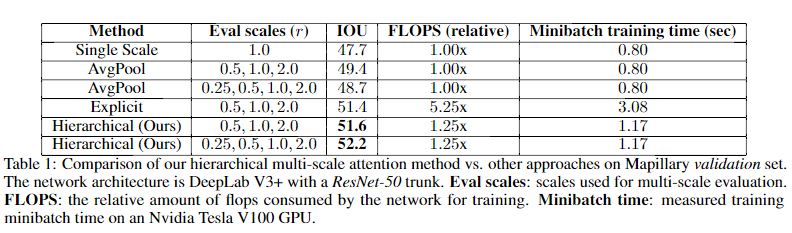 本文提出的网络如上图所示,网络可以通过该机制学习预测相邻尺度之间的相对权重。本文的注意力机制是分层的,因此与其他最新方法相比,其注意力训练的内存效率大约高4倍。除了可以进行更快的训练之外,这还使我们可以使用更大的crop进行训练,从而提高了模型的准确性。