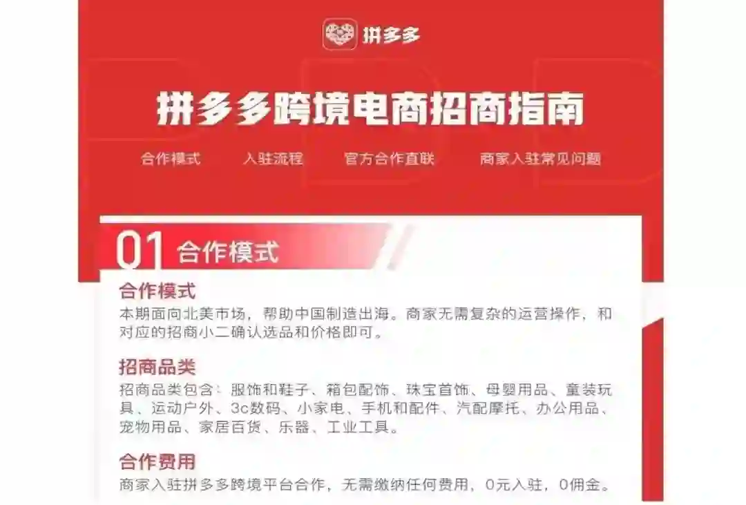 根据Temu此次发布的商家招募来看,拼多多为此次的 Temu入驻商家提供了0元入驻、0佣金的入驻优惠政策。