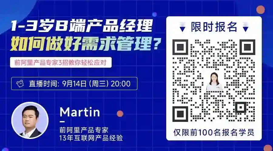 9月14日(周三)20点,前阿里产品专家@Martin老师为你带来《B端产品经理如何做好需求管理》专题直播,详细拆解3个案例教你一一破解B端需求管理难题~提升对产品业务需求的掌控力~