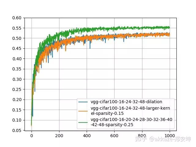 保持同样的参数和稀疏度,在cifar100上训练的结果如下所示,