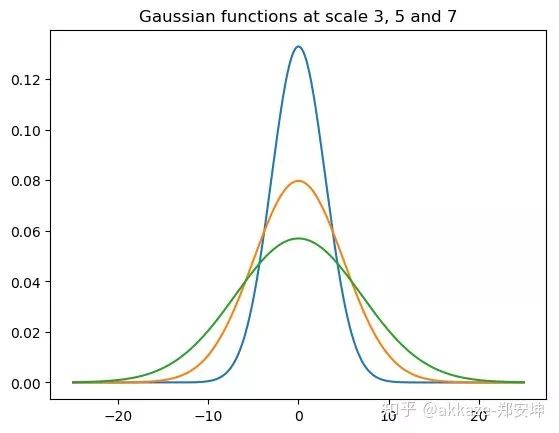 这篇文章的另一个作用,对于数学家分析CNN更加方便,不用再建模下采样,只用证明卷积核稀疏性可以建模图像识别,并且因为没有了采样,卷积也就变成了连续空间上的卷积,(同时,激活函数也是可以软化的),卷积核大小可以用函数支撑空间来描述(类似于高斯核的有效半径)。下图即高斯核函数 在不同的