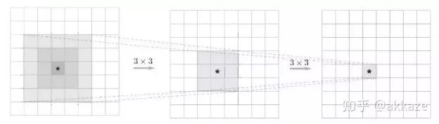 我们知道,大卷积核的感受野通常可以通过叠加多个小卷积核得到,vggnet首先发现5x5卷积可以用两个3x3卷积代替,极大减少了参数量。