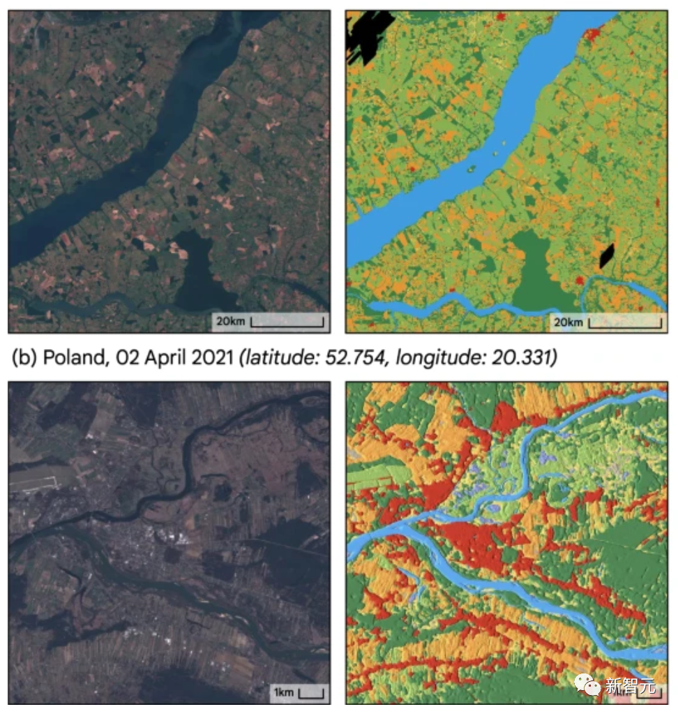 卫星图像和「动态世界」图像的对比,可以看到河流、林地、农田、城市等样貌