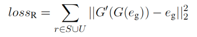通常,适配器只能通过已出现关系的表示来学习映射,而忽略了潜在的大量未出现的关系。在这里,该论文使用额外的重构损失来增强适配器。更具体地说,采用了反向适配器 G’(·),将 G(e) 映射回e。