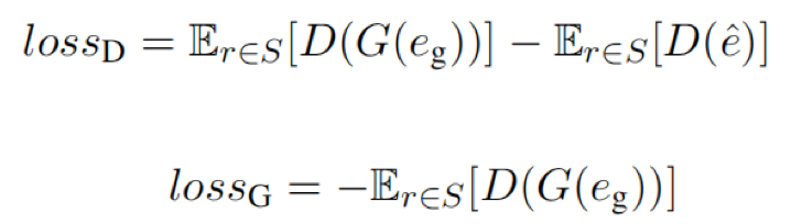 适配器 G(·) 在 GaN 中充当生成器。对于从训练集取样的任何关系,鉴别器的损耗lossD和生成器损耗lossG的目标函数是: