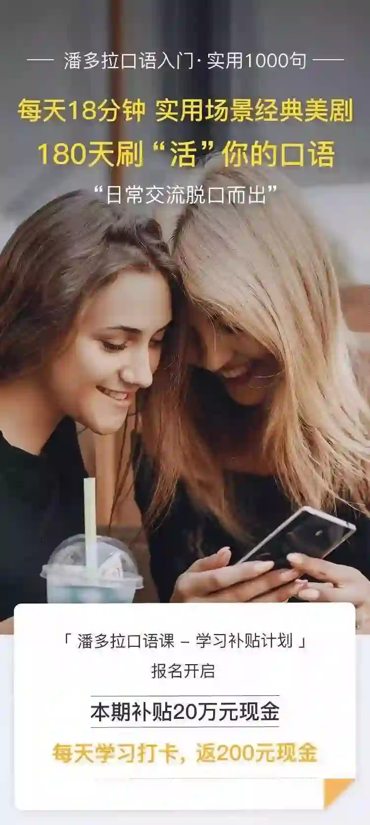 只要你能连续坚持学习打卡,不仅可以免费学习还能赚钱!《潘多拉口语课——实用1000句》可谓是诚意满满,只为了拯救你的口语而来!