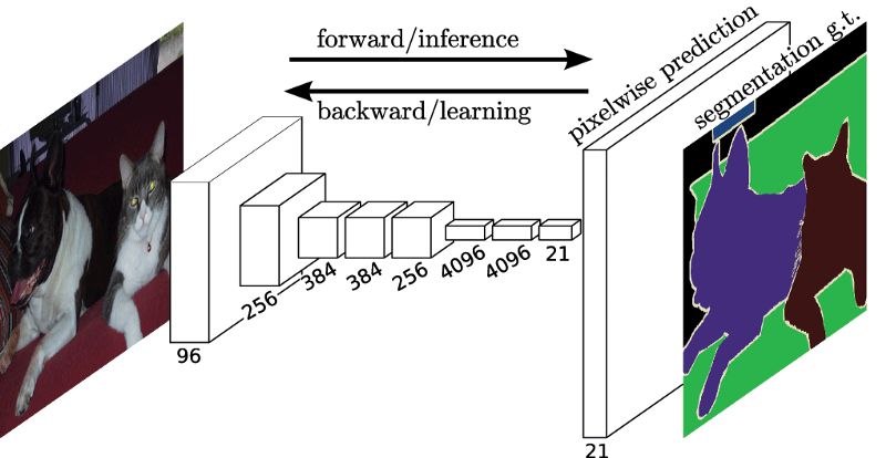 相反,解决方案是加州大学伯克利分校的全卷积网络(FCN),它推广了端到端的CNN架构,用于密集预测而无需任何全连接层。这允许为任何大小的图像生成分割图,并且与补丁分类方法相比也快得多。几乎所有后续的语义分割方法都采用了这种范式。