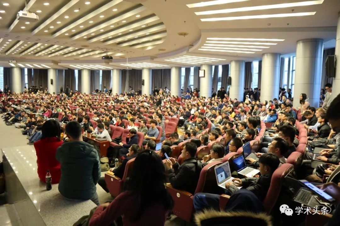 CCF YOCSEF学术委员会主席唐杰和清华大学计算机系老师崔鹏共同主持讲座。讲座现场座无虚席,很多同学提前1个半小时就到现场去占座。