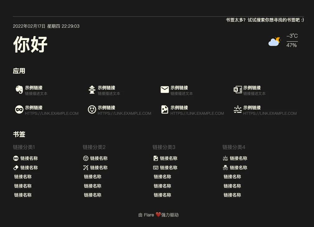 : 本文行文考虑到了不同水平的读者:如果你熟悉 Docker,那么将能够在十分钟内拥有属于自己的书签导航;如果你是一个新手,也没关系;跟着文章一步步操作,大概半个小时,相信你也能够将 Flare 运行起来,顺带熟悉 Docker 的使用,步入容器世界的大门。