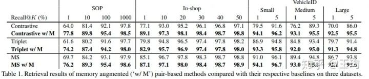 1. 本文的XBM,记住过去的特征,使得模型的训练不再仅仅依靠当前mini-batch的样本,而是可以跨越时空,进行样本配对。从而用极小的代价,提供巨量的样本对,为pair-based的深度度量学习方法插上了腾飞的翅膀。这种提升难例挖掘的方式,也是突破了过去的难例挖掘的两个套路:加权和聚类。方法也是更加直接暴力,效果拔群,我觉得这种做法命中了深度度量学习的要害。