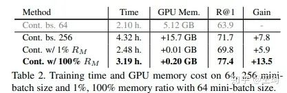 上图我们展示了在SOP上训练XBM的计算资源消耗,即便把整个训练集(50K+)的特征都加载到XBM,不过需要0.2GB的显存,而如果是增大batch,会另外需要显存15GB的,是XBM的80倍,但是效果的提升XBM要强得多。毕竟XBM仅仅需要存特征,特征也只是过去的mini-batch的前向计算的结果,四舍五入不要钱,这个XBM婚介所中介费可以说是真的很低了。