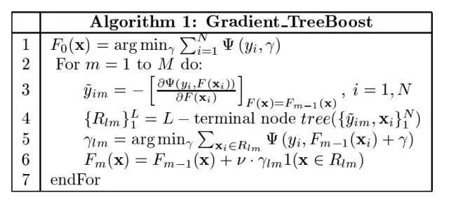 根据参考文献【1】的介绍,梯度提升算法的算法流程如下所示: