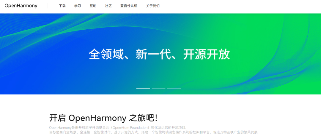 近日,开源鸿蒙 OpenHarmony 官网焕新升级,全新官网以原有内容和架构为基础,从开放透明、共建共享、用户赋能及互动体验等多方面进行优化、改善。本着开放治理,公开透明的原则,OpenHarmony 项目群将工作会议日历公开展示,共建单位、开发者、社会各界均可实时知悉 OpenHarmony 项目进展;同时提供兼容性认证专区,为积极参与 OpenHarmony 生态共建伙伴提供开放平台,完成官方认证;还重新规划了学习板块,新增了互动专区等。