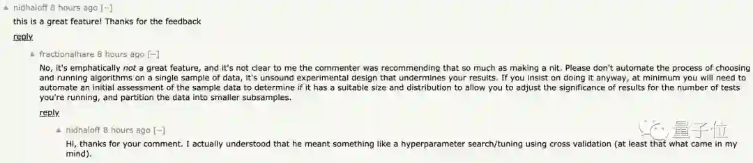 例如,一个网友指出,如果能用交叉验证进行超参数搜索/调整,那么会是个很好的改进,而作者本人也立即采纳了这个建议。