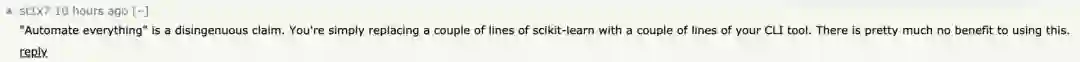 有网友认可这样的观点,毕竟对于许多做生产的机器学习工程师来说,“任何不需要做的编程工作”都是没有意义的,是在“浪费时间和金钱”。