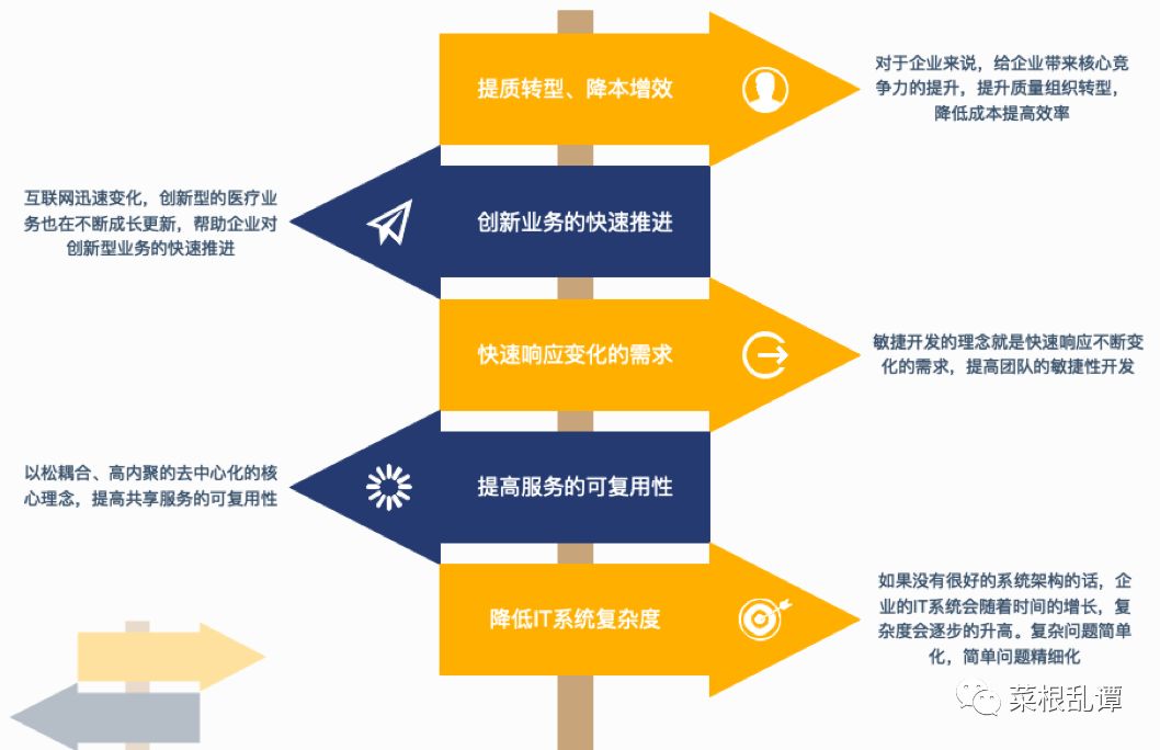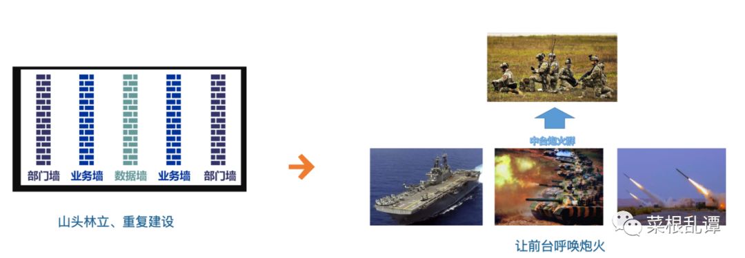 所以,如果您是创业团队,或者业务线比较单一,建议不要盲目尝试中台架构,否则将拖累你业务发展的速度 。另外,我们也要清晰的知道实施中台的目的,以及中台会给企业带来的价值,没有实际利益的推动中台就很难落地,或者有形而无神。