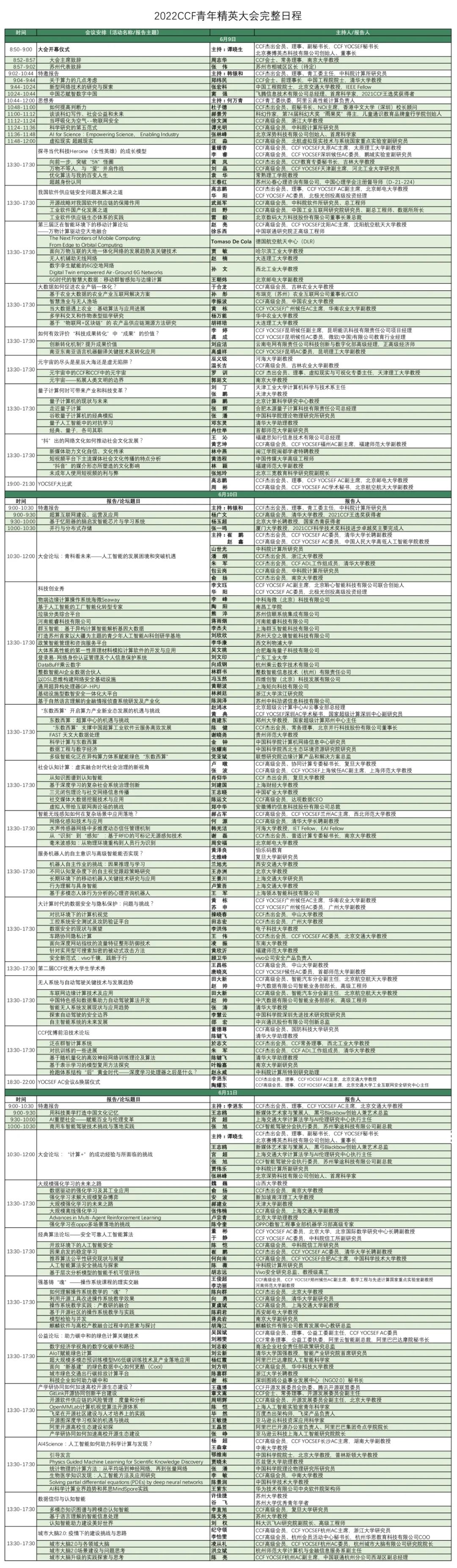 CCF年度盛会——第十二届青年精英大会(YEF 2022)将于6月9-11日在北京、苏州等城市线上线下联动举办,主题是“大计算、大融合”。期间郑纬民院士、张宏科院士等学者将作特邀报告,CCF前任秘书长杜子德、科幻作家郝景芳等嘉宾将在“思想秀”分享洞见,大会同时将邀请交叉学科思辨“计算+”,并举办“科技创业秀”和“大学生学术秀”,以及23场探讨AI、安全、公益等热门话题的观点和技术论坛。
