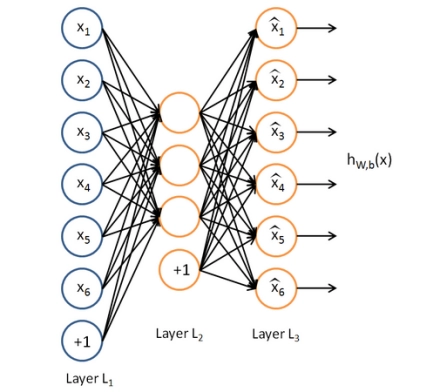 通常来说隐藏层的神经元数量是要小于输入图片的,这样训练后,自编码器的中间隐藏层就可以作为图片的表征向量,因为训练过程的目标就是仅用该隐藏向量即可还原图片。