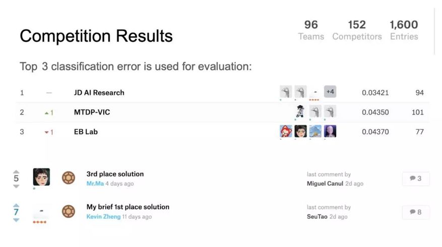 美国时间 6 月 17 日,码隆科技在 FGVC6 Workshop 上公布大赛最终结果,前三名分别为京东 AI 研究院、美团点评视觉图像中心和东信北邮。