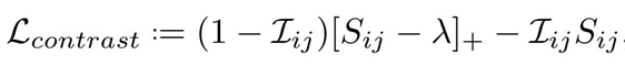 其中 I 表示指示函数,如果 i 和 j 为正样本,则 I_ij 为 1,否则它就等于 0。我们可以了解到,正样本对的损失就直接是负的相似性 -S_ij,负样本对只有在相似度高于阈值 λ时损失函数才大于0。从这个简单的案例,我们可以发现这类损失函数的目标,即在嵌入空间中将标签相同的同类样本拉得更近,将标签不同的异类样本推地更远。