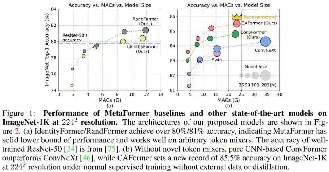 近日,原班人马对MetaFormer进行了进一步的探索:依托MetaFormer引入了最基本的Mixer,提出了几个基线模型并取得了喜人的性能,得出以下几个发现:
