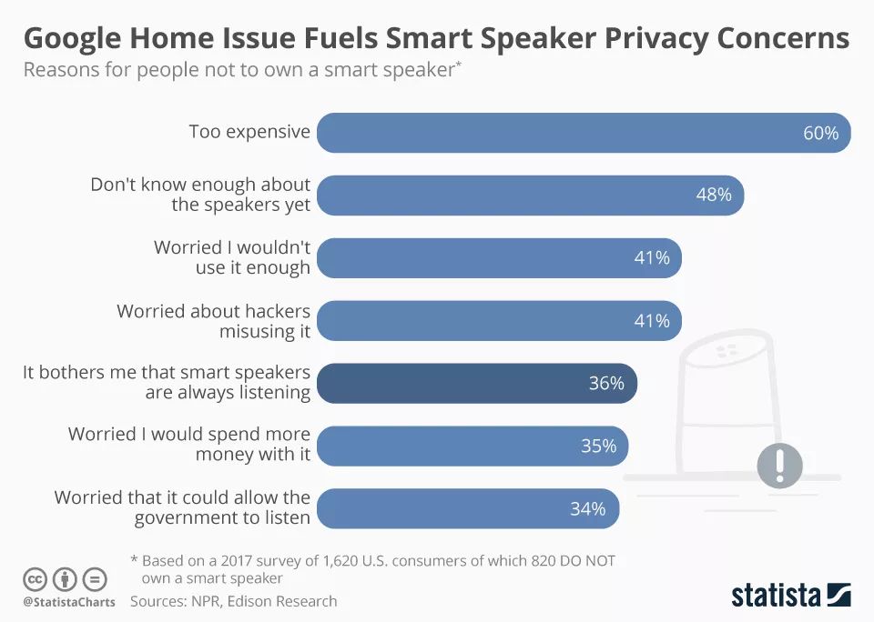 用户调研显示:google home speaker 的隐私是个巨大的问题。